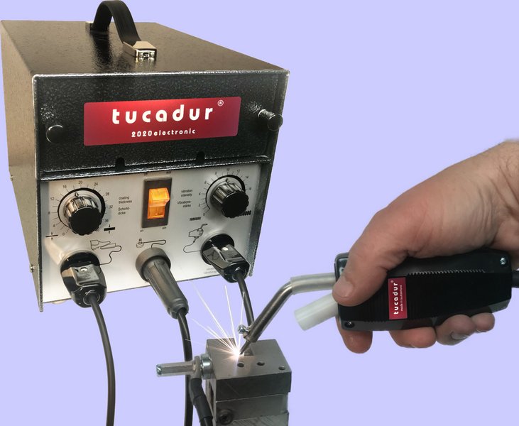 : coating gun,hand piece,with light,mass-cable,contact,magnet,mains-cable,schuko,footswitsch,tucadur,coating,hardmetal,tucadur®,Unitool,Cosmeca,Kurval,Netherlands,Joke,joke technology,
